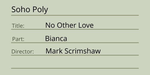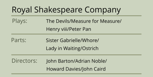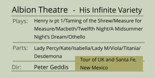 Italian. Advanced yoga, physical theatre, very good movement, ballet & tap. Singing - light mezzo.